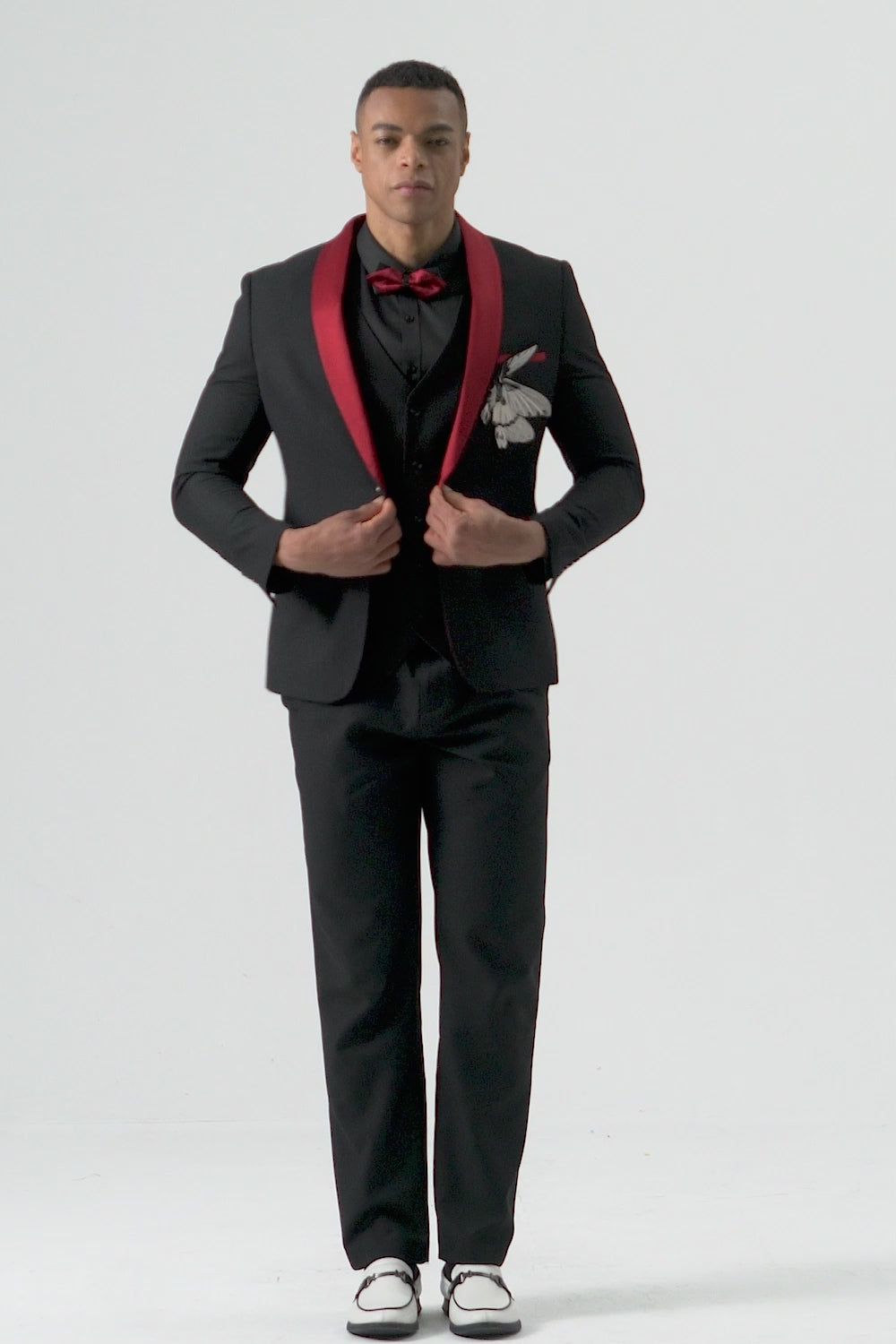 3 Piece Black Red Shawl Lapel Herrbaldräkter
