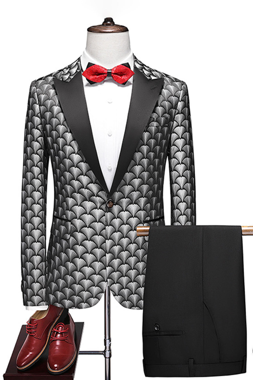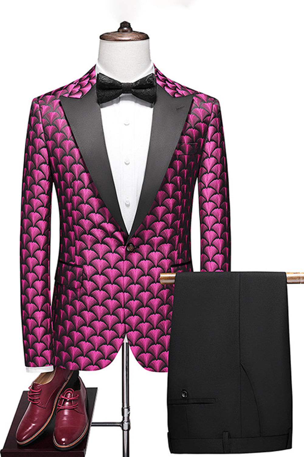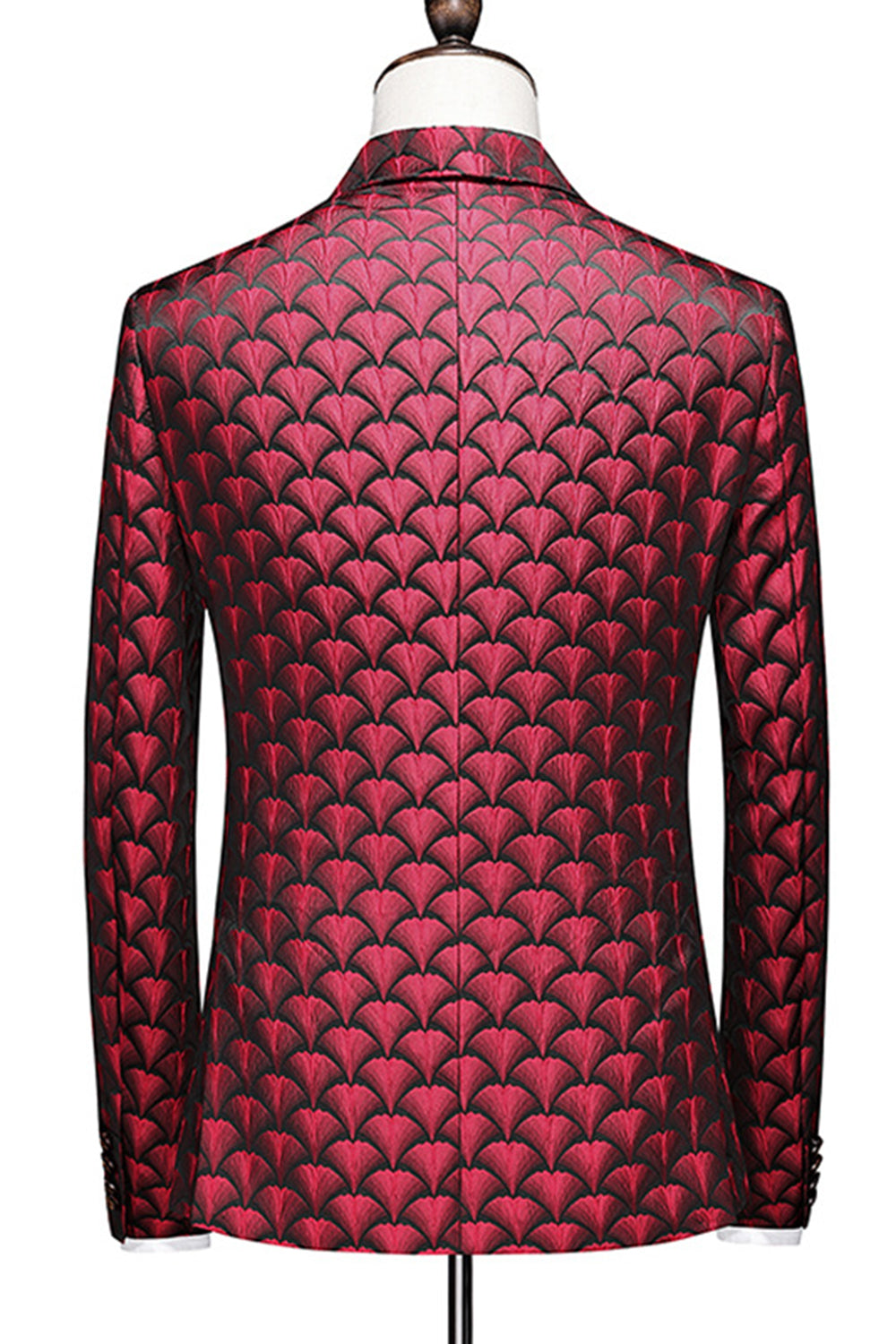 Vinröd Jacquard Notched Lapel 2-Delade Kostym Herr