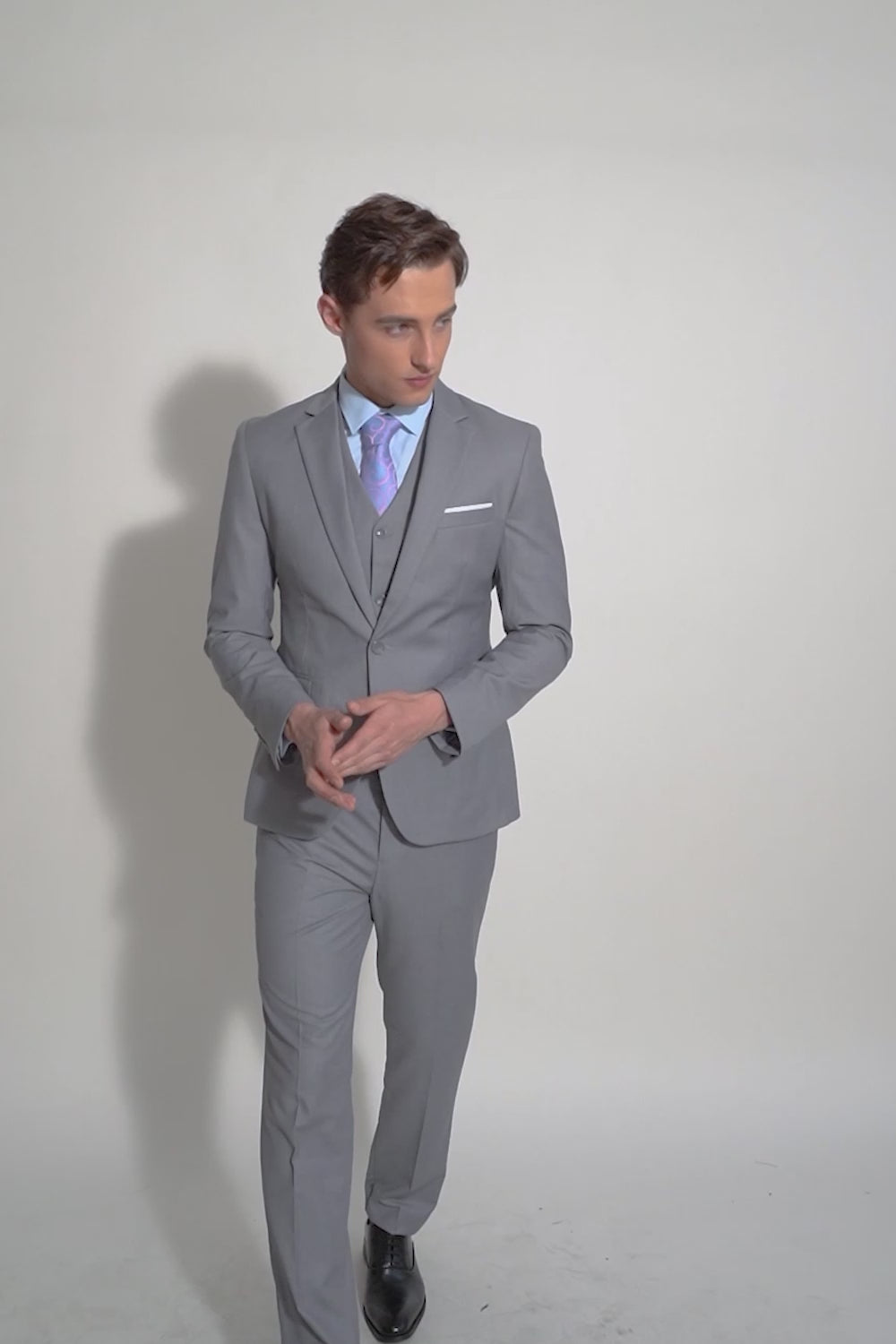 Grå 3-Delat Skårade Lapel Kostym Herr