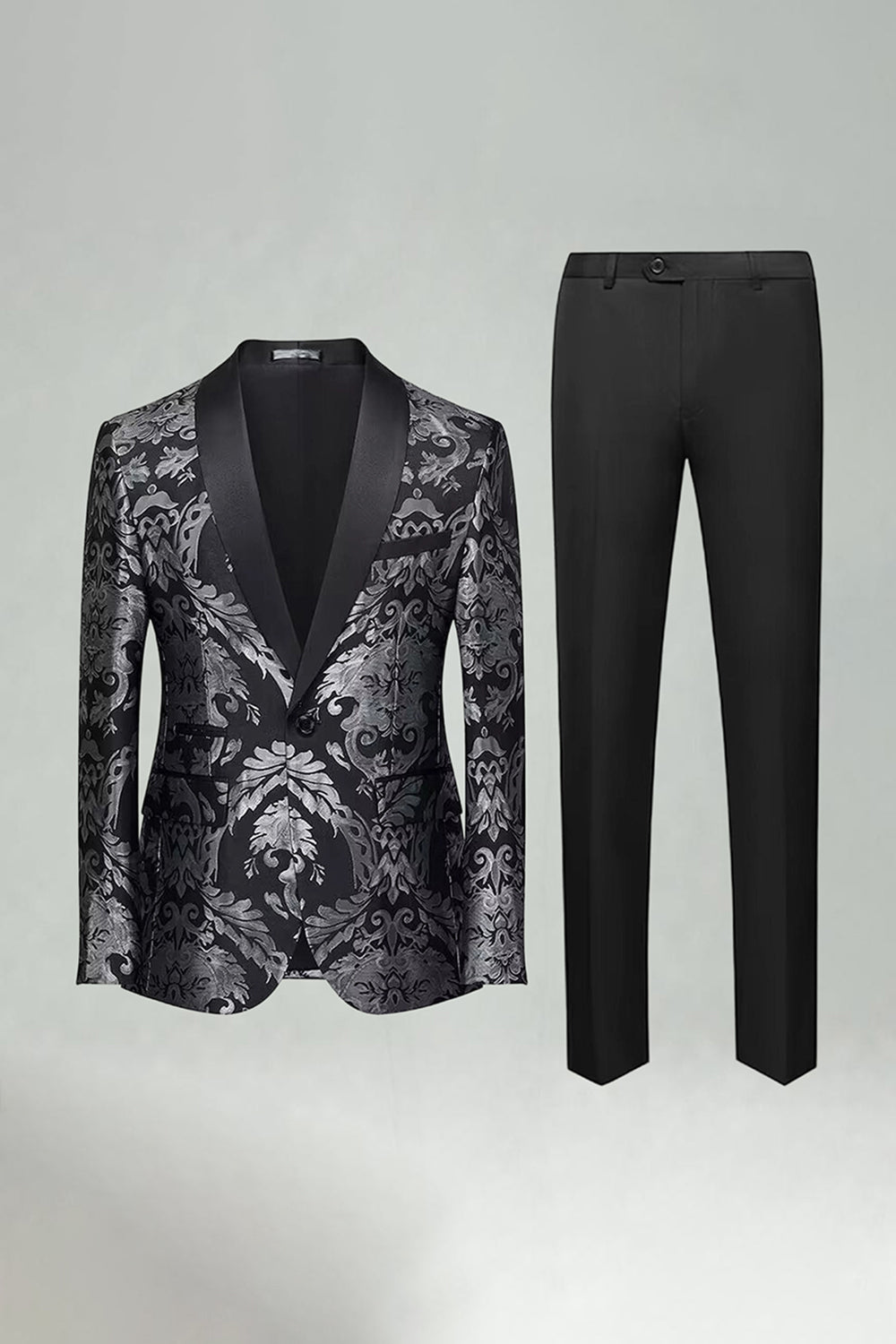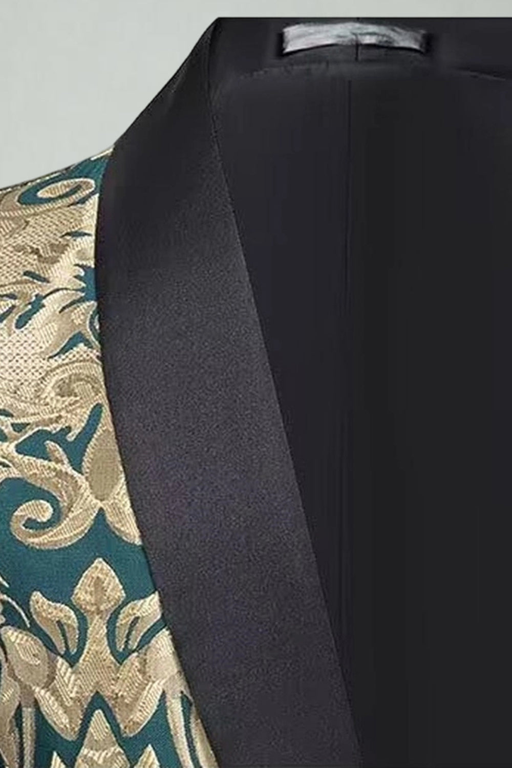 Green Jacquard 2-delade sjal-kragar herrbaldräkter