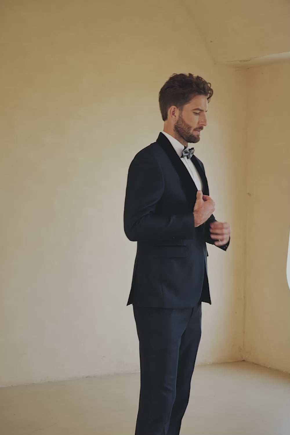Marinblå 3-Delad En Knapp Shawl Lapel Bröllopskostym Herr Tuxedo