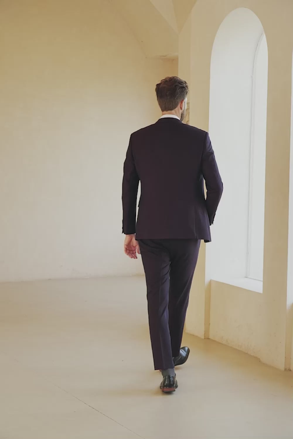 Mörklila 3-Delad En Knapp Notch Lapel Kostym Herr