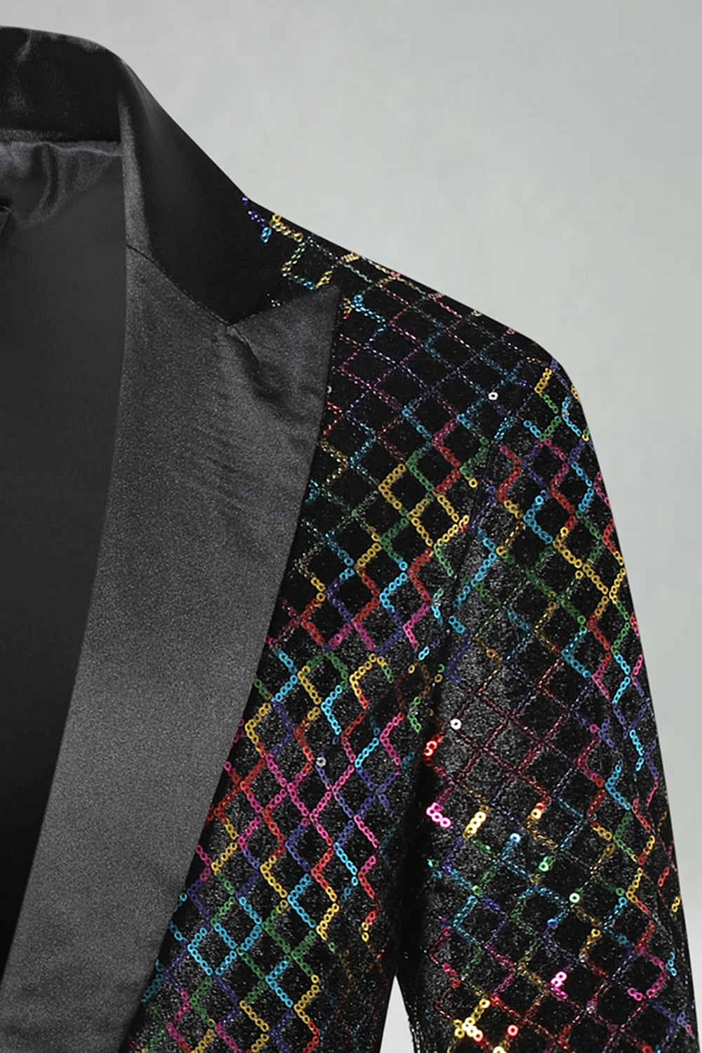 Peak Lapel färgglad paljettkavaj med en knapp herrbalskavaj