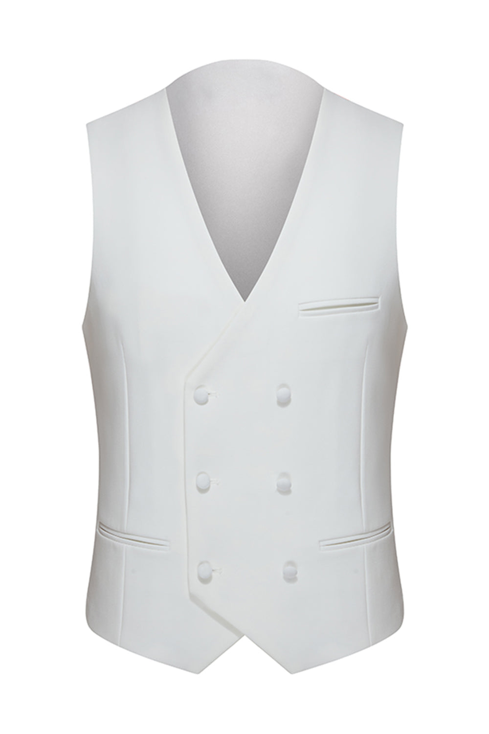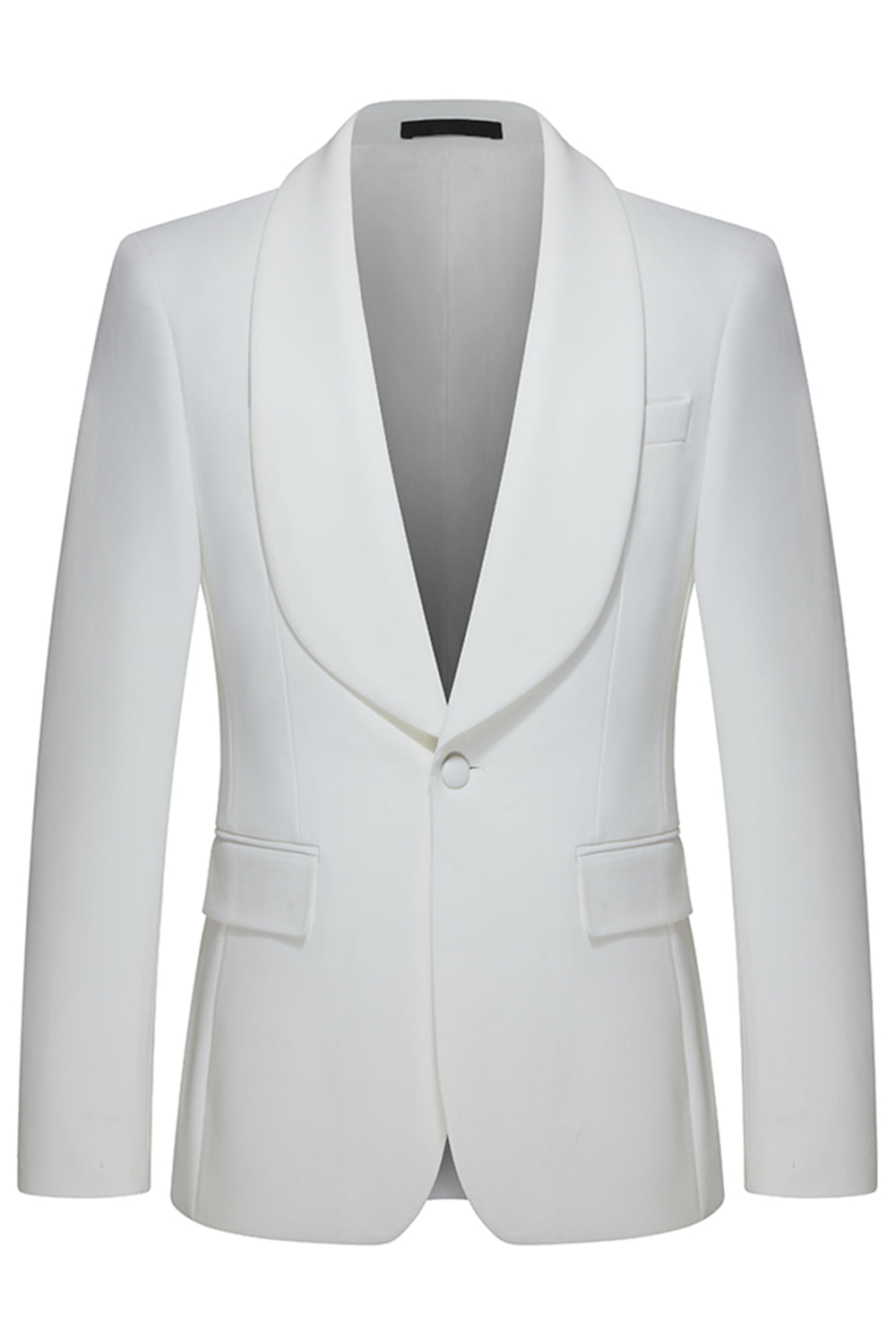 Sjalslag, 3-delad enknapps vita herrbröllopsdräkter