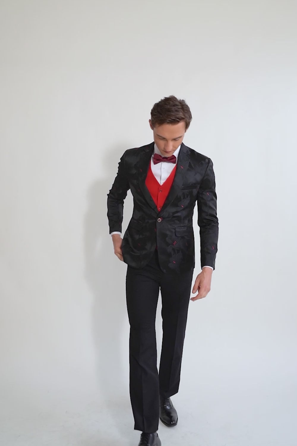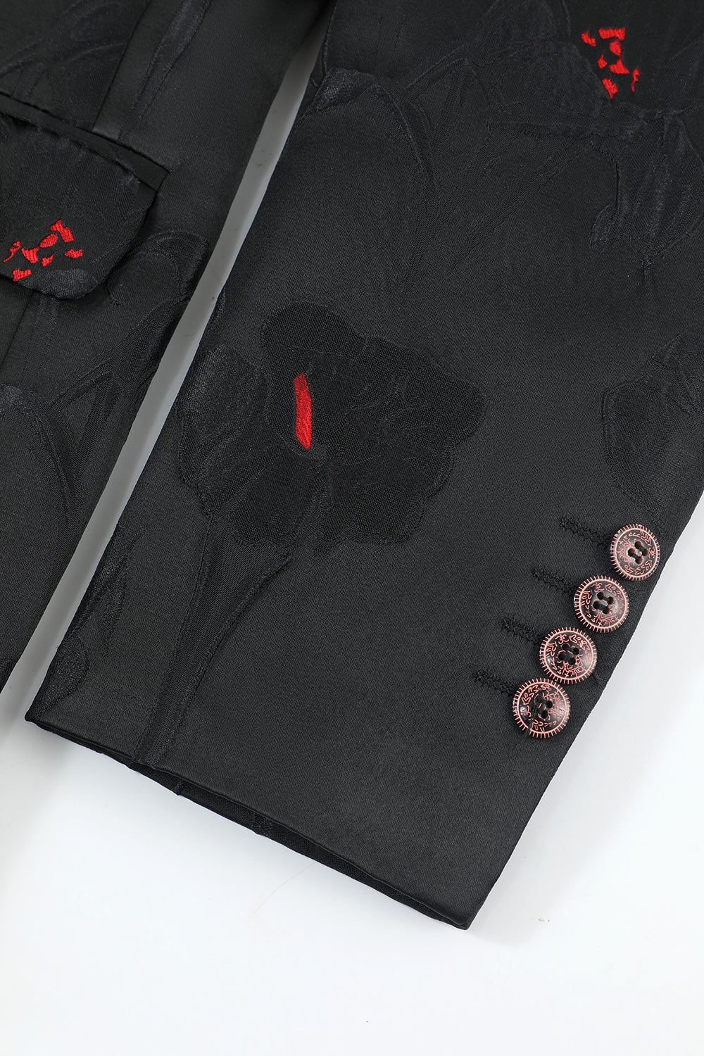 Skårad Lapel Enkelknäppt Svart Blazer Herr