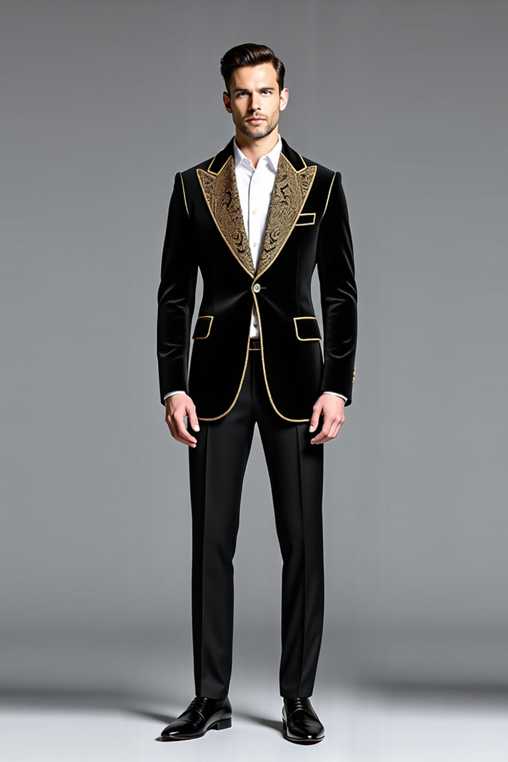 Svart Enkelknäppt 2 stycken Peak kavajslag Baldräkter för män