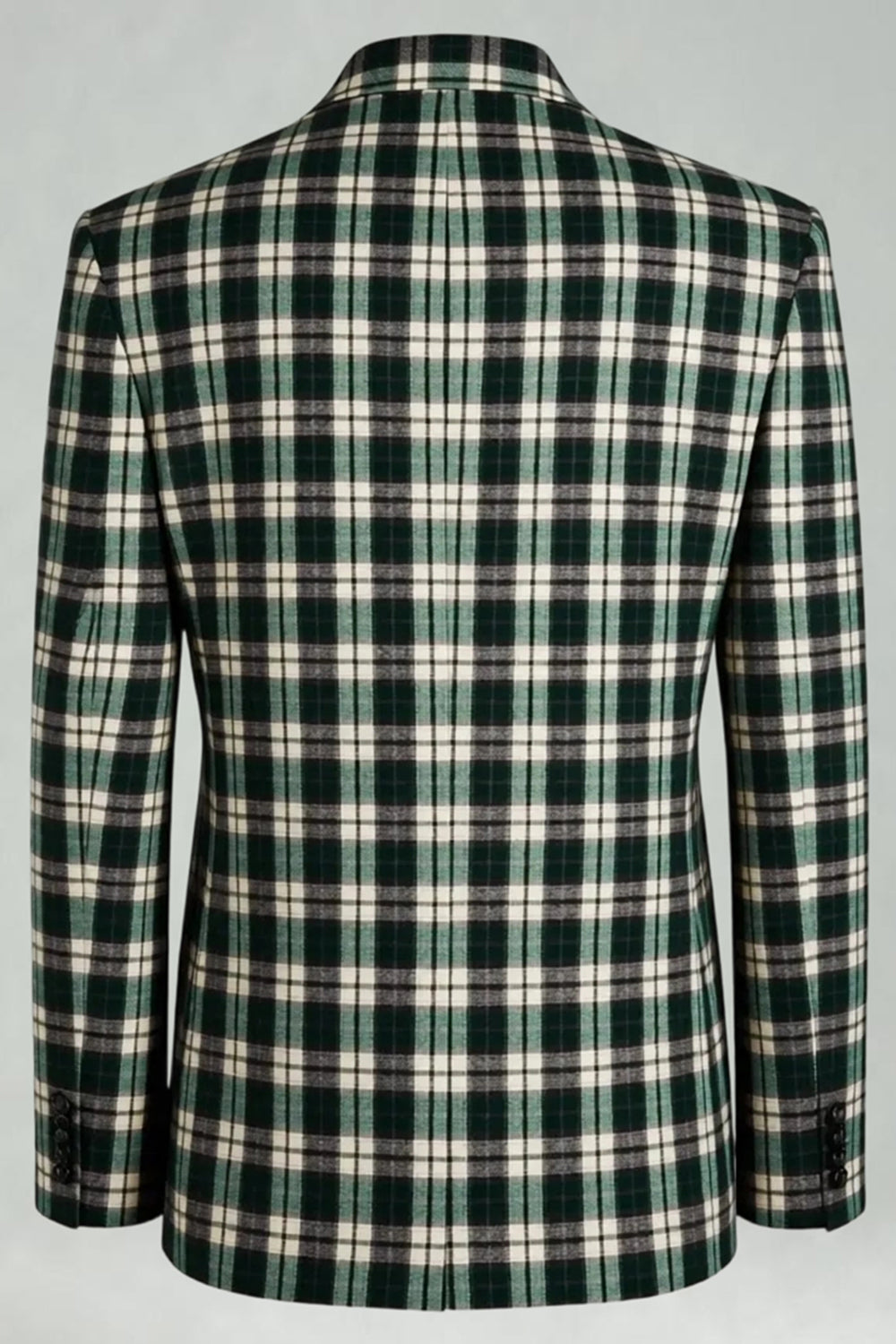 Svart Grön Rutnät Topp Kavajslag 2-delat Baldräkter för män