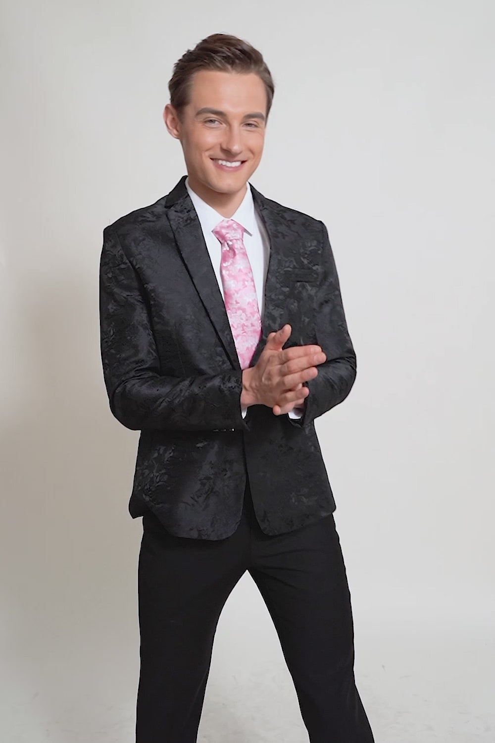 Svart Jacquard Satin Hached Lapel Blazer Herr
