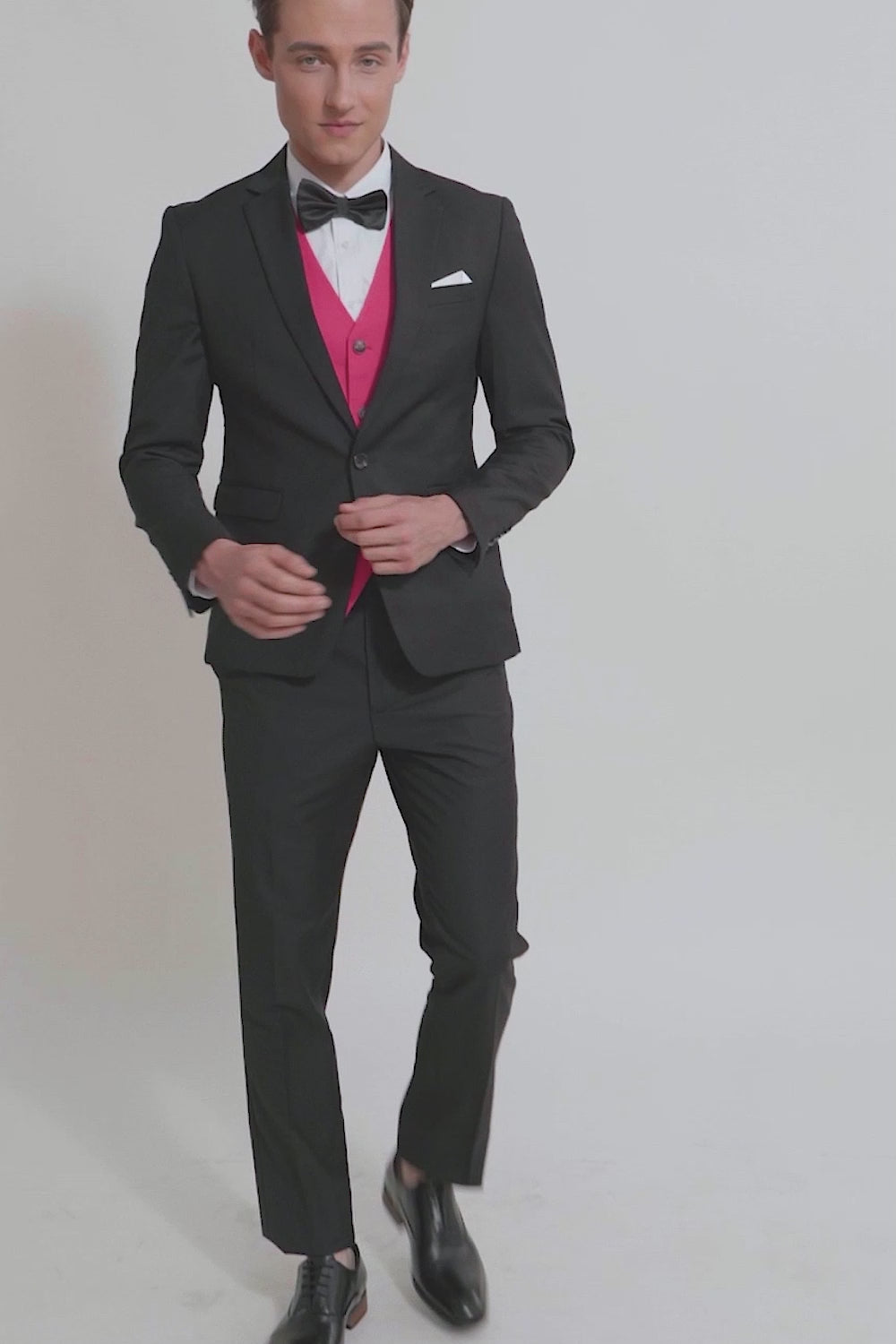 Svart Rosa 2-Delat Skårat Lapel Kostym Herr