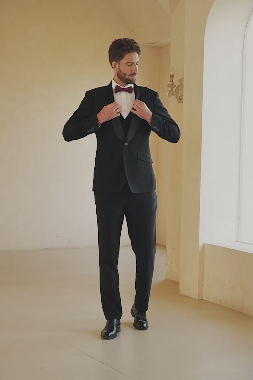 Svart 3-Delad Shawl Lapel Bröllopskostym Herr Tuxedo