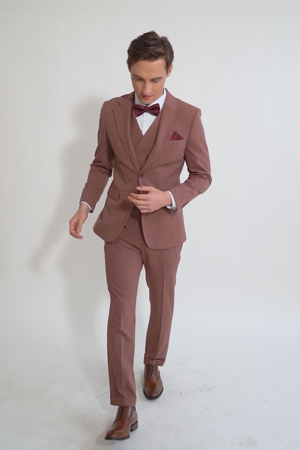 Tan Notched Lapel 3-Delat Enkelknäppt Kostym Set