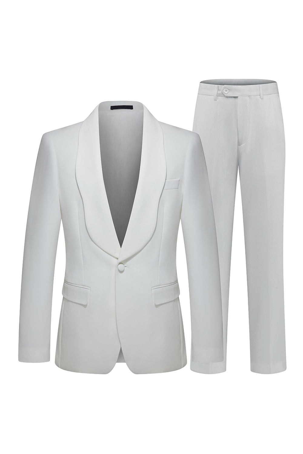 Tvådelade vita sjalslagsdräkter för herrbröllopsdräkter