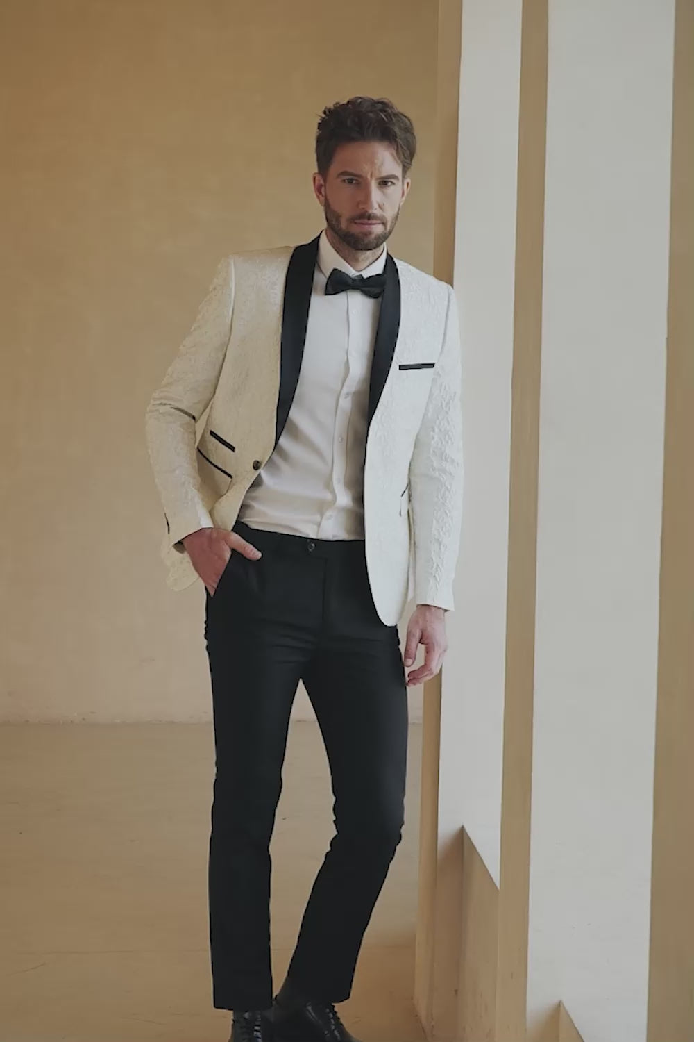 Vit Sjal Lapel Jacquard En Knapp Mäns Bal Kavaj