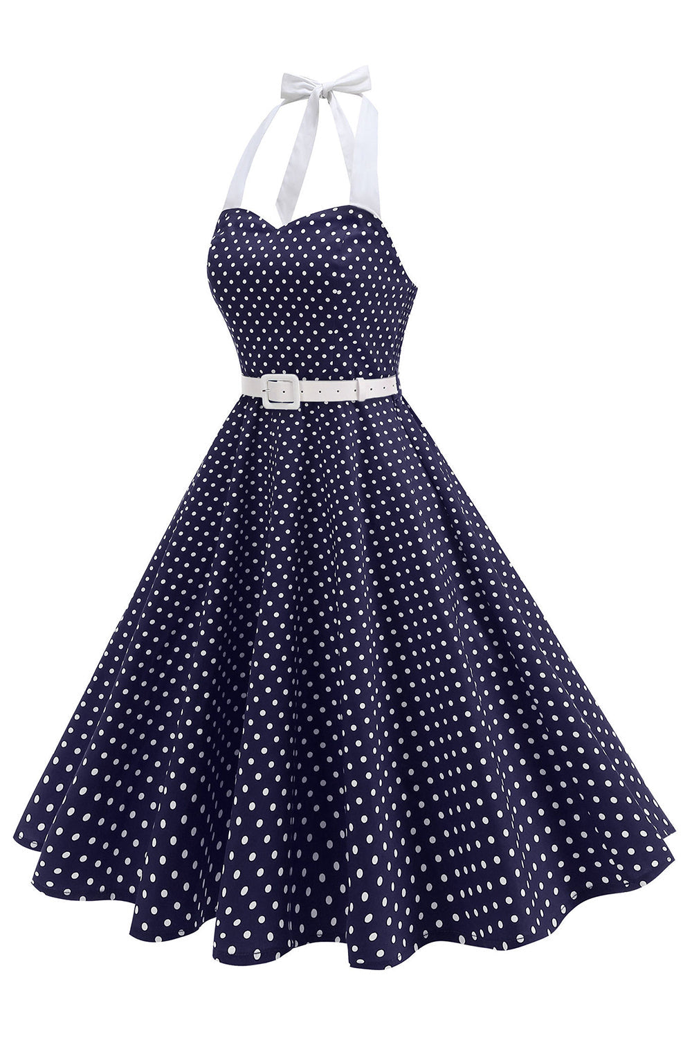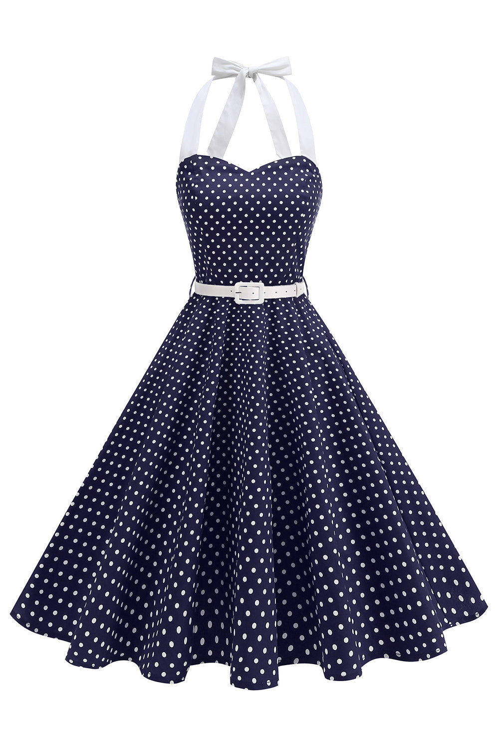 Halter Polka Spots Royal Blue A-linje 1950-talsklänning