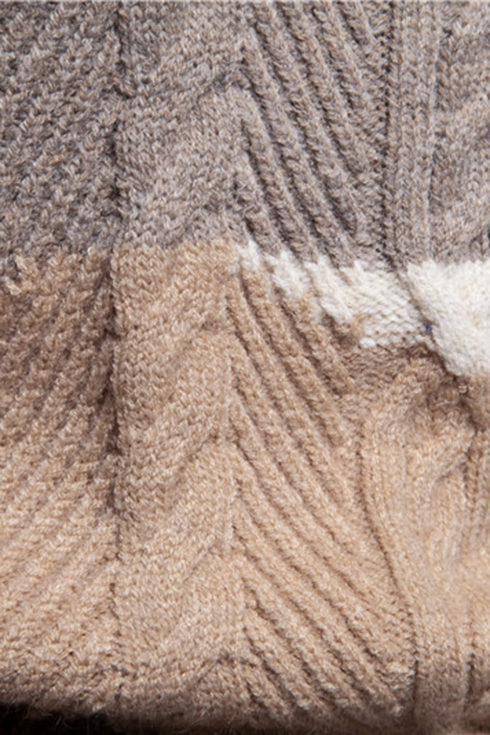 Mäns Vit Rund Hals Colorblock Kabel Pullover Tröja