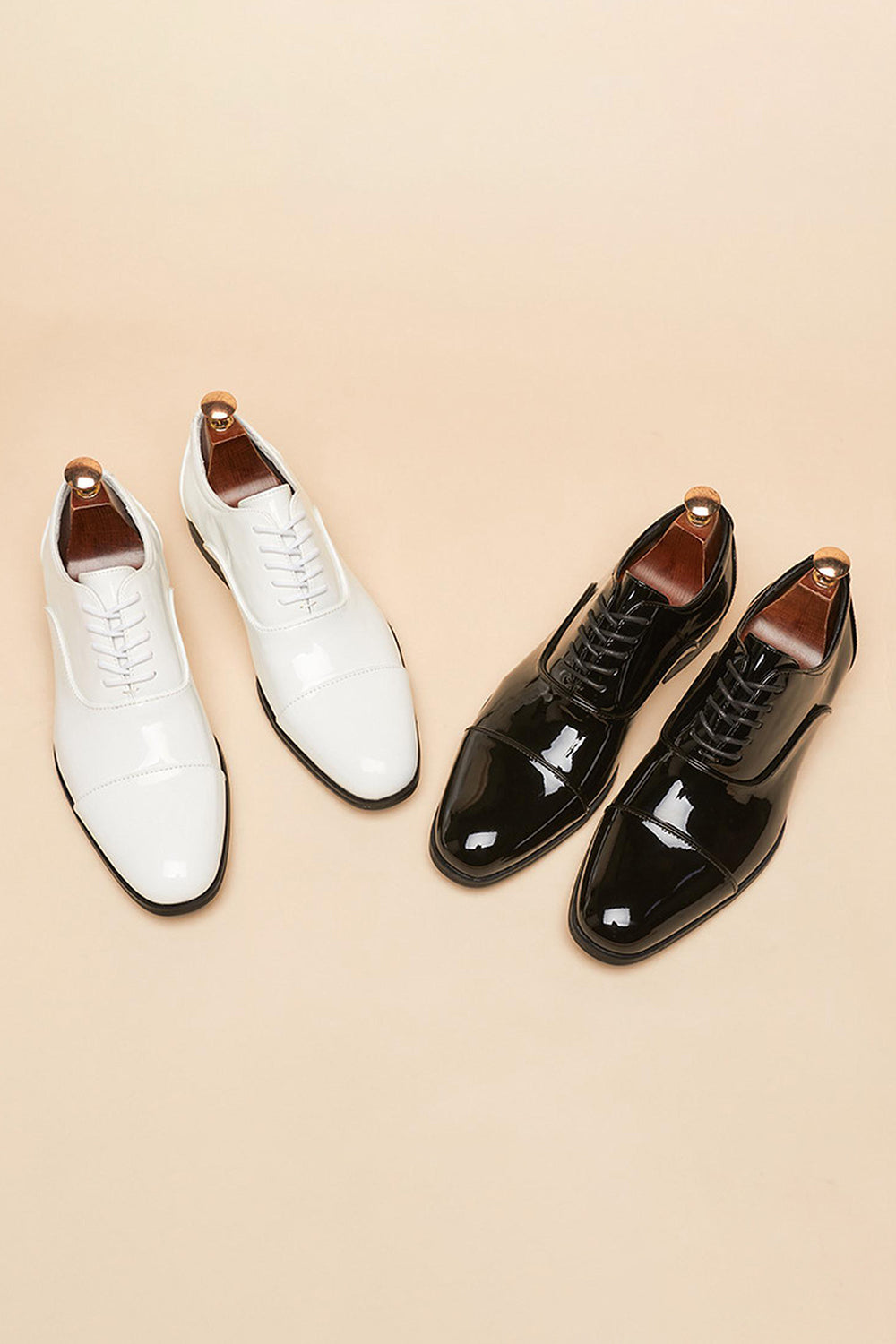 Svarta snörningsskor i läder för herrbröllopsbröllopsskor