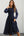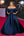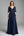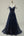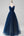 Marinblå balklänning V-ringad lång pärlstav tyll balklänningar med plisserade