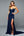 Marinblå Djup V-hals Slida Satin Formell Klänning med slits