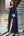 Marinblå Chiffong Långärmad Brudens mor Byxa Kostymer med volanger