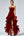 Axelbandslös Tiered Röd Tyll A Line Balklänning med slits