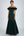 Mörkgrön rynkad klänning för brudens mor med fladdrande ärmar