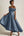Off The Shoulder Volang Tryckt Blå Bröllop Gäst Klänning Med Slits