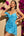 Blå A linje V-ringad 1950-talsklänning med korta ärmar