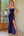 Plisserad Blå Tryckt Korsett Lång Balklänning med Slits