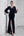 Puffärmar Mörkblå Rynkad Lång Sammet Balklänning med slits