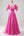 Prinsessa rosa balklänning volang av axeln tyll lång balklänning med pärlor