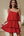Röd Djup V hals öppen rygg Kort Hemkomst Klänning med Volanger