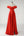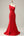 Röd En Linje Från Axeln Rynkad Lång Balklänning