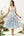 Söt A-linje Av Axeln Blå Tryckt Kort Hemkomst Klänning med Volanger