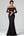 Svart Fyrkantig Hals En Linje Balklänning med Slits