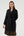 Svart lång skårad kavajslag vändbar ullkappa med bälte