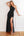 Svarta kors och tvärs remmar En rad lång brudtärna klänning med slits