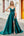 Tiered Ruffles Påfågel Grön Axelbandslös Lång Balklänning med Beading