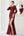 Vinröd Halter Ruffles Balklänning med slits