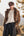Brun Rutig Dubbelknäppt Herrväst Med Tillbehörssats