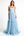 En linje himmelsblå spaghetti remmar chiffong rynkad brudtärna klänning