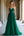 En linje mörkgrön spaghetti remmar lång bröllop gäst klänning