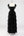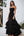 En linje veckad rosett spaghetti remmar svart lång brudtärna klänning