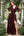 En linje utanför axeln vinröd lång brudtärneklänning med volanger