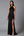 Enkel Svart Slida Halter Lång Formell Klänning Med Slits