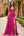 Fuchsia A Line Djup V-hals Rynkad Lång Balklänning Med Slits