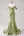 glittrande grå grön sjöjungfru spaghetti remmar korsett lång balklänning med slits