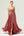 A-linje V-ringad Vinröd Brudtärna Klänning med Volanger
