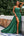 A-linje Spaghetti Straps Grön Tryckt Lång Balklänning Med Slits