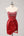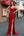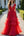 Glittrande röd A-linje djup V-hals volanger balklänning med pärlstav