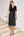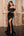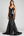 Glittrande sjöjungfru V-ringad svart slips klänning med snörning upp i ryggen